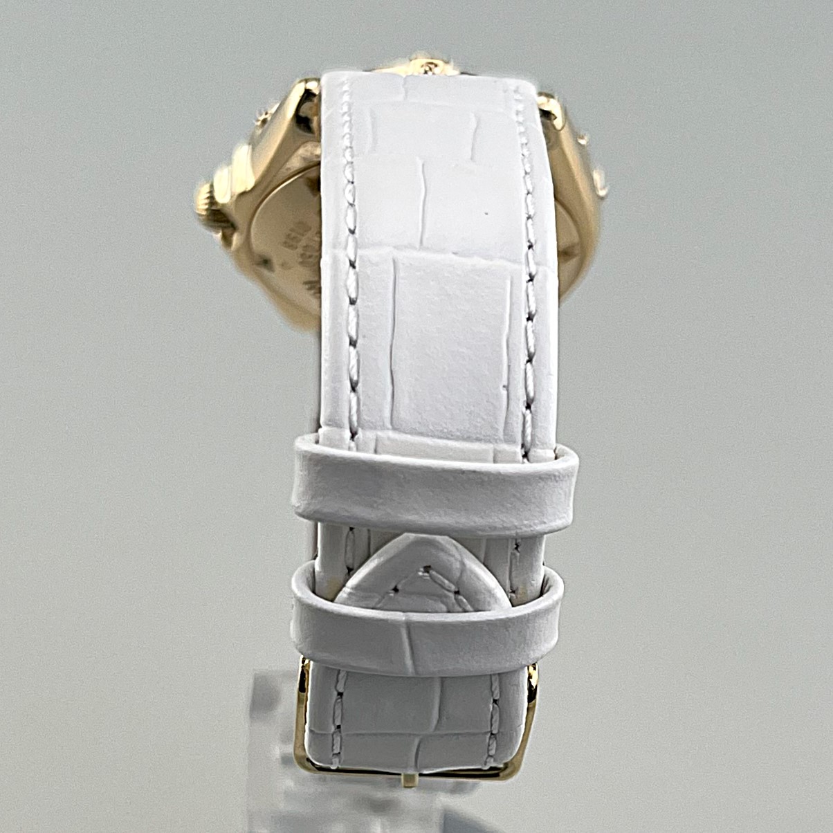 weißes Perlmuttzifferblatt mit 11 Diamanten besetzt,