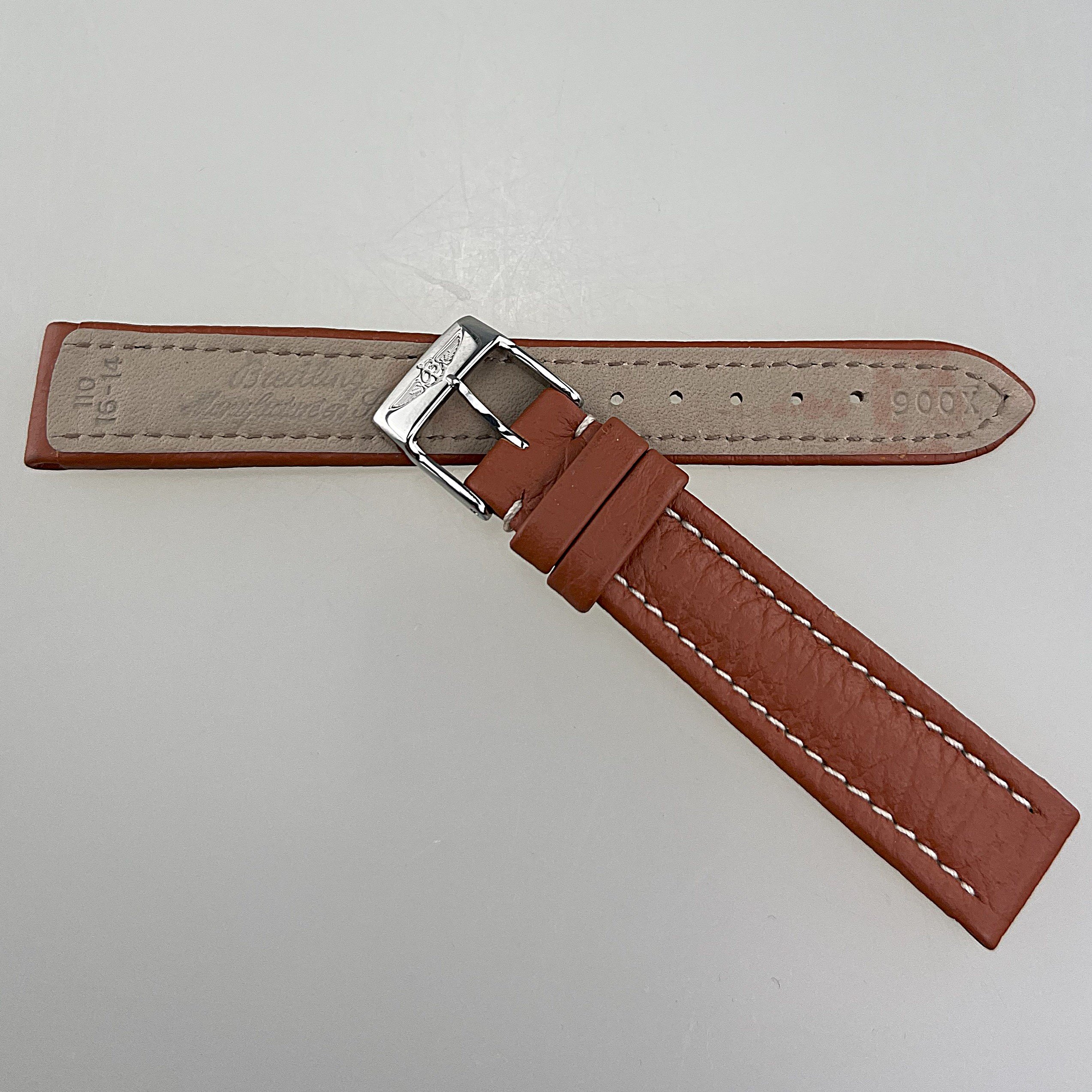 Original Breitling Kalbslederarmband braun mit weißer Steppnaht und Original Edelstahldornschließe