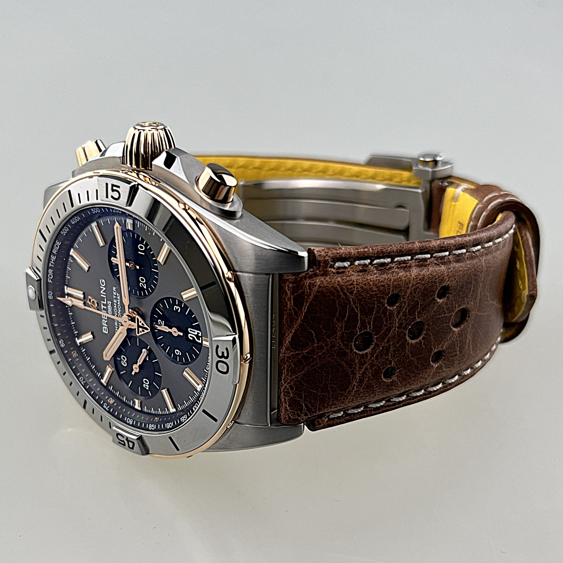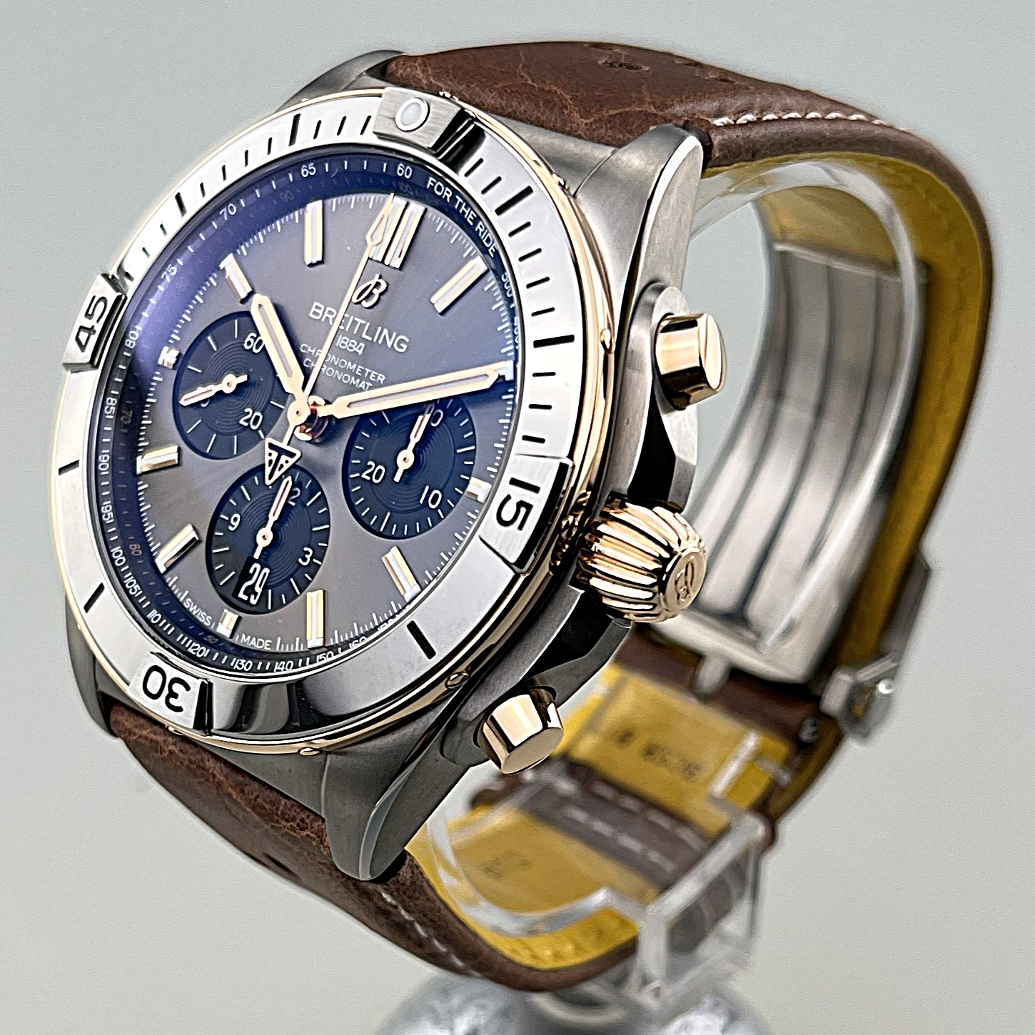 Breitling Chronomat B01 Automatik 42 TRIUMPH Titan & 18 K Rotgold Lederarmband braun, Kautschukarmband schwarz (zusätzlich), TB0134101M1X1, Full Set, neu/ungetragen, deutsche Auslieferung 12/2024