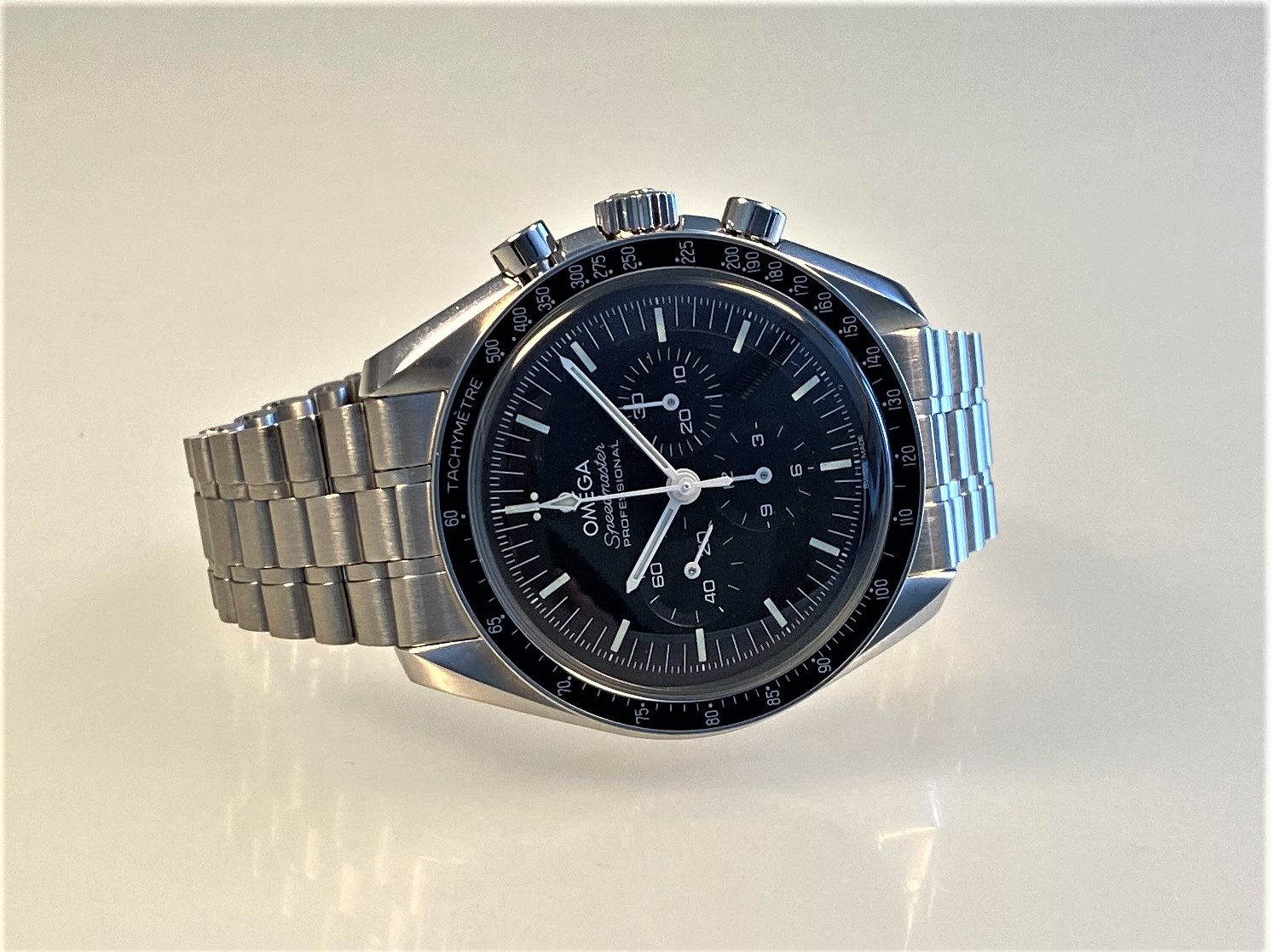 NEUERSCHEINUNG: OMEGA SPEEDMASTER MOONWATCH PROFESSIONAL CO-AXIAL MASTER CHRONOMETER CHRONOGRAPH, 42 mm mit Handaufzug, Edelstahlgehäuse mit Edelstahlarmband, Hesalitglas, geprägter Gehäuseboden, Ref.-Nr.: 310.30.42.50.01.001 ungetragen, in einer aufwändigen Sonderverpackung mit sämtlichen Papieren.