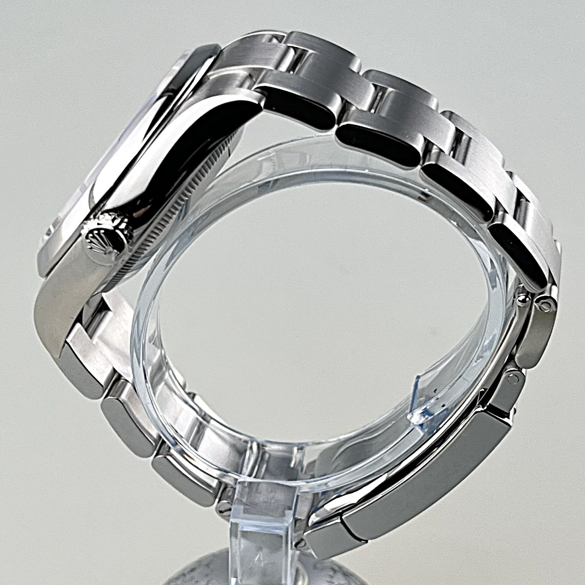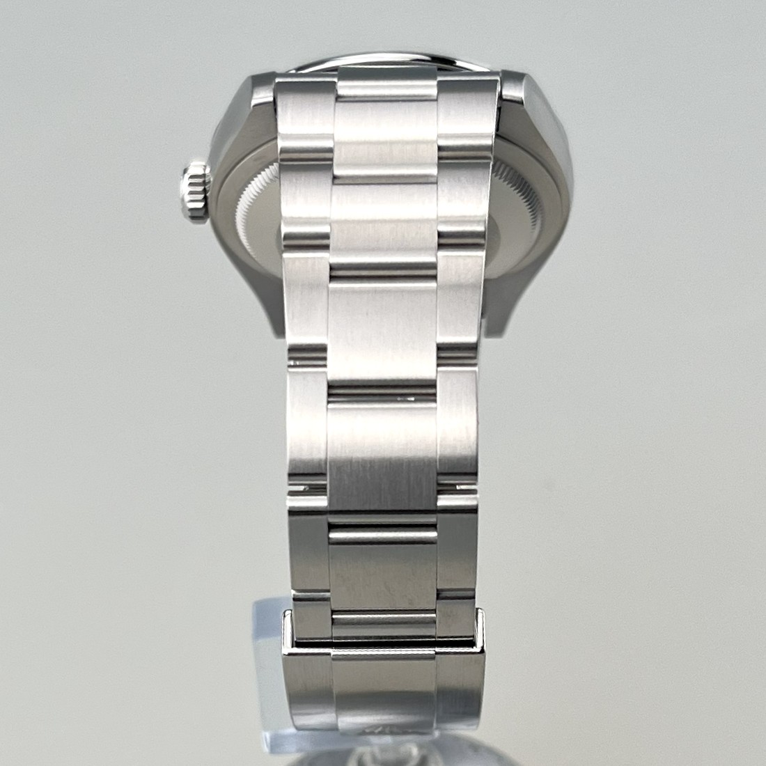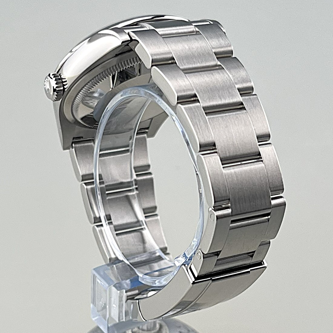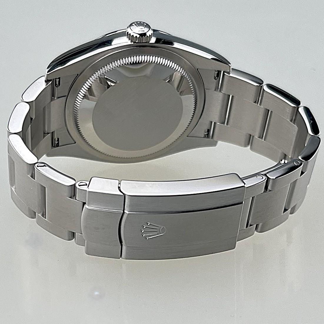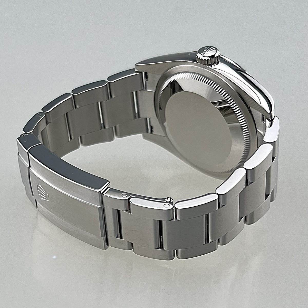 Es handelt sich um ein absolut neues/ungetragenes Exemplar. Diese Rolex Oyster Perpetual mit einem Gehäusedurchmesser von 36 mm wurde ursprünglich von einem Konzessionär aus Deutschland ausgeliefert