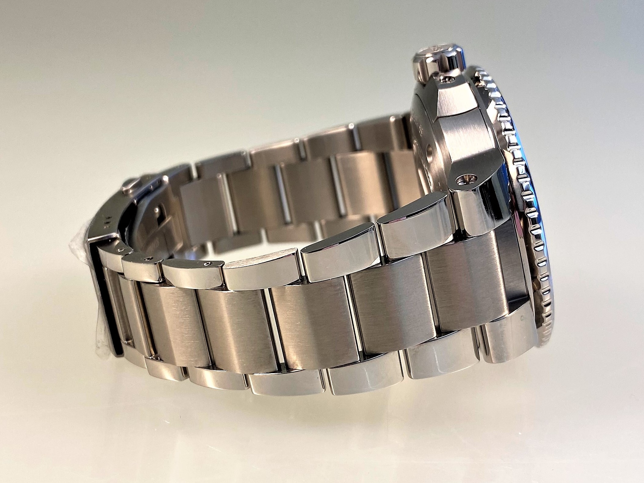 Die ORIS Arquis Dat Watt zeichnet sich optisch durch ein massives, mehrteiliges Edelstahlgehäuse (Durchesser 43,5 mm) aus, welches durch ein perfekt abgestimmtes Edelstahlarmband gehalten wird. Die Elemente dieses stabilen, hochwertigen Armbands sind mittig satiniert und außen hochglanzpoliert.