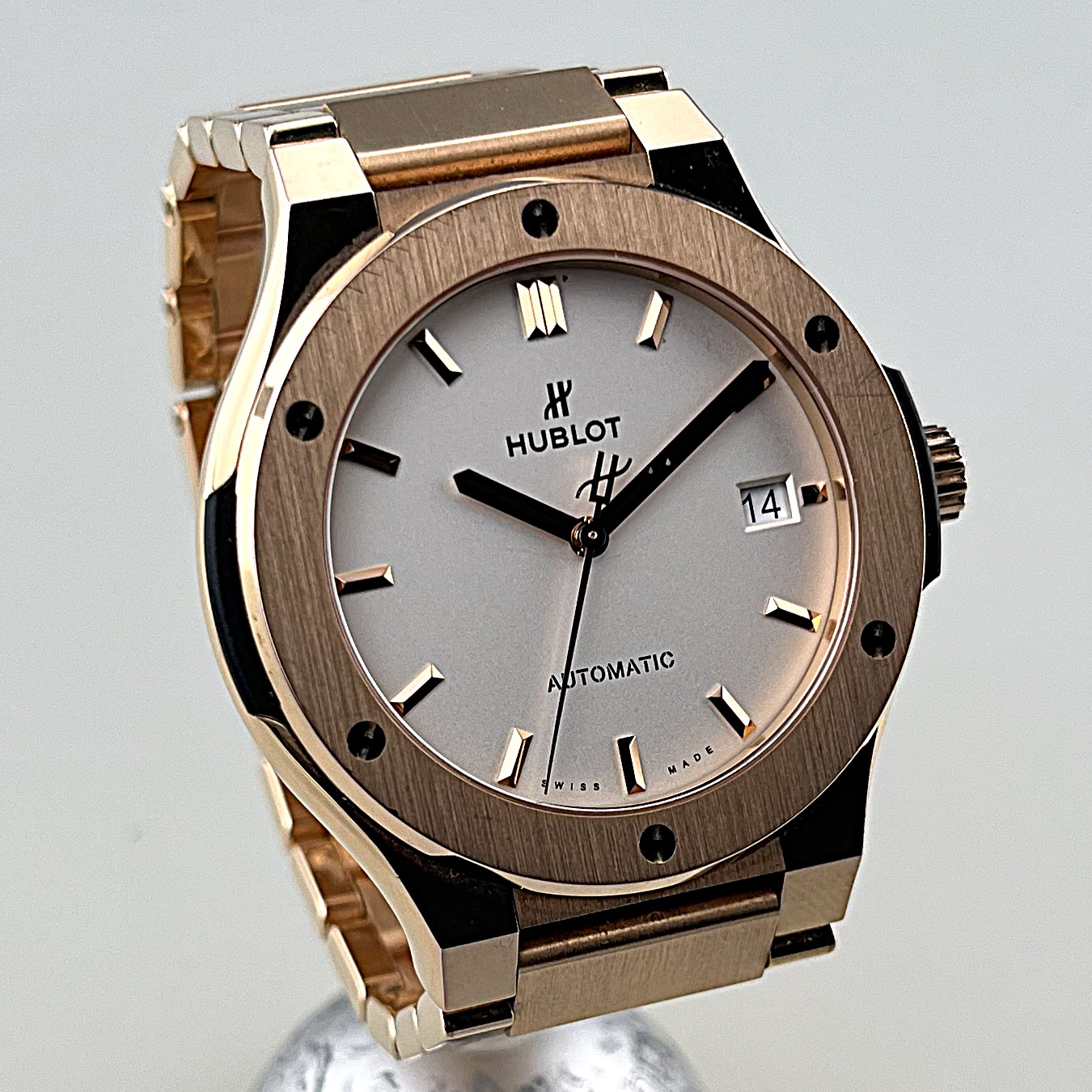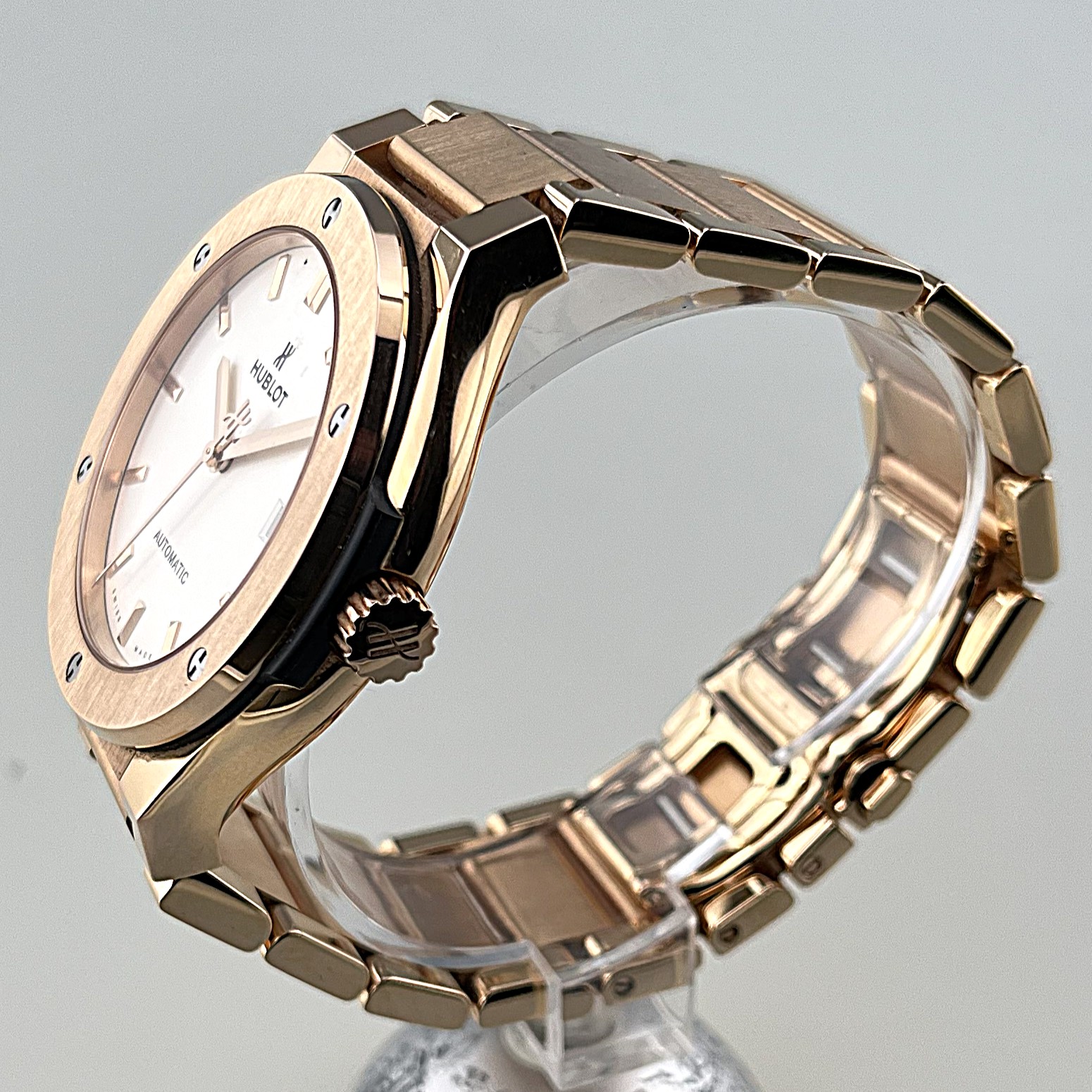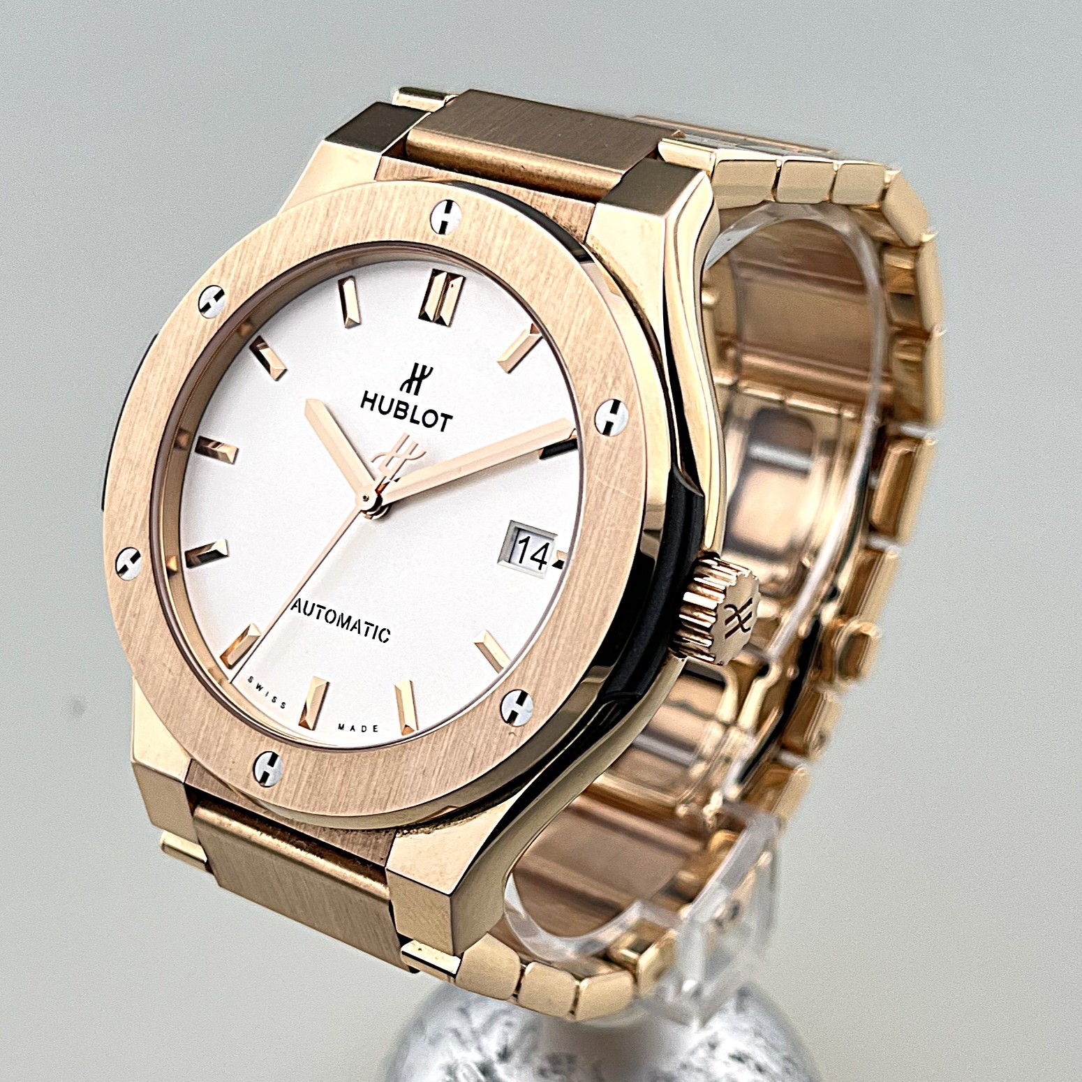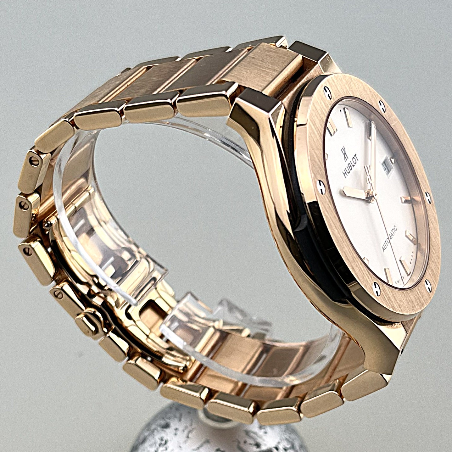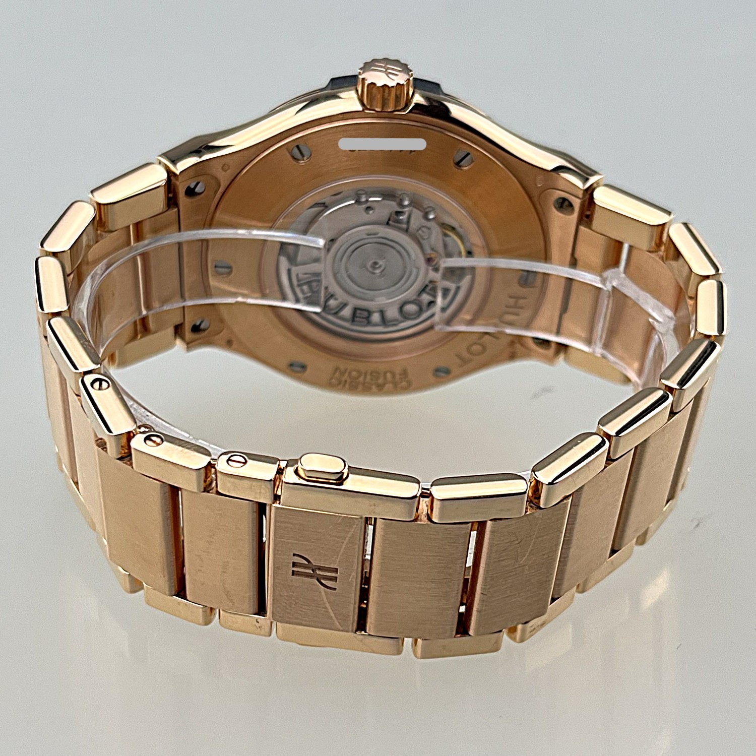 Absolute Seltenheit: Hublot Fusion King Gold, Ref. 510.OX.2610.OX, Roségold mit einem 45 mm Gehäuse in 18 Karat (750) Roségold sowie massivem Armband in 750 er Roségold aus Erstbesitz.