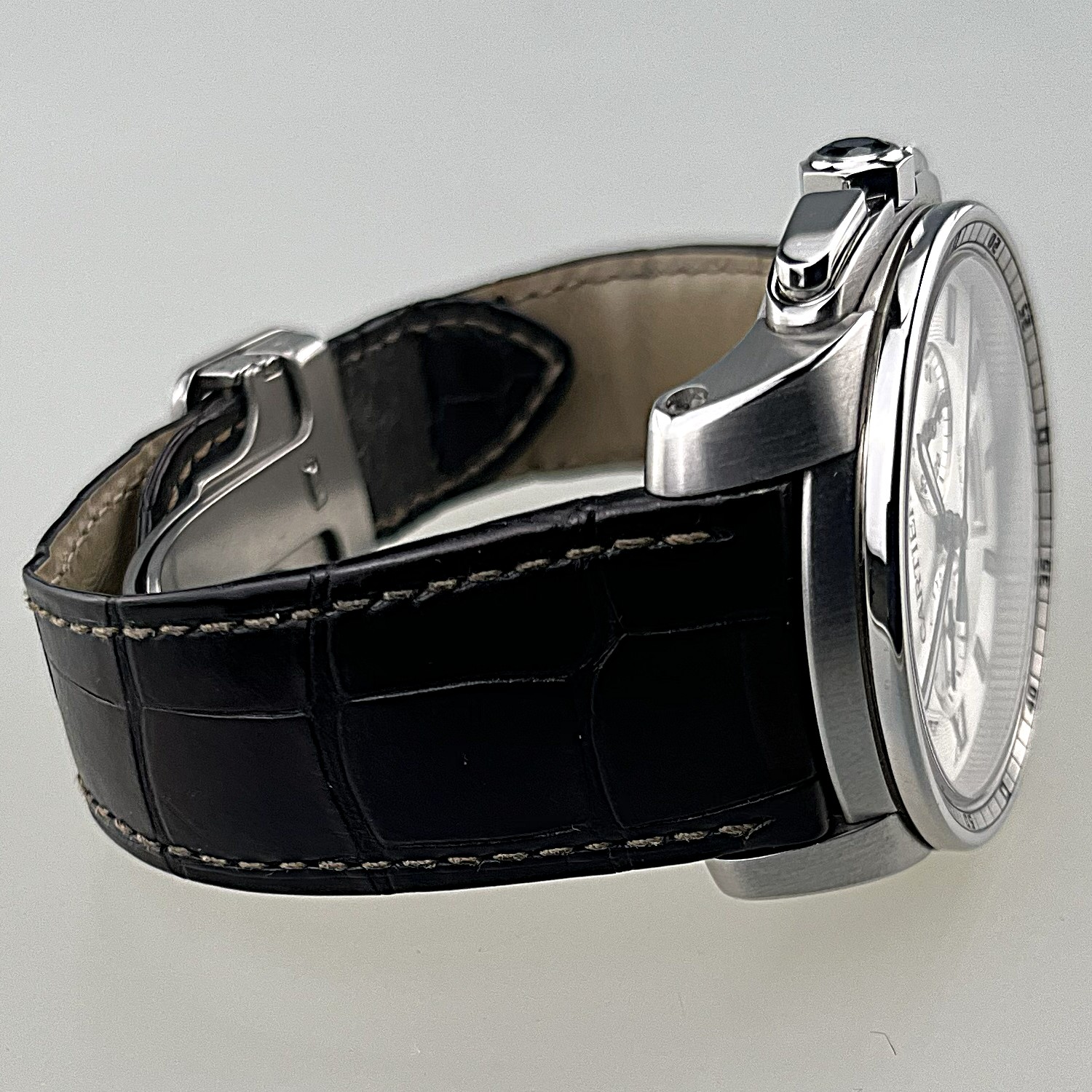 Dieses seltene Modell aus der Maison Cartier ist im Dezember 2021 erstmalig von einem deutschen Cartier Konzessionär ausgeliefert worden. Es befindet sich in einem hervorragenden Zustand mit nur geringen und kaum spürbaren Tragespuren. Dieser Cartier Chronograph Uhr wird im Full Set (vollumfänglicher Auslieferungszustand) geliefert. Das Garantie Zertifikat wurde beim Erstkauf von einem offiziellen Cartier Konzessionär am 30.12.2021 aktiviert und ist i.d.R. über eine Anmeldung bei Cartier Care auf bis zu 8 Jahre verlängerbar.
