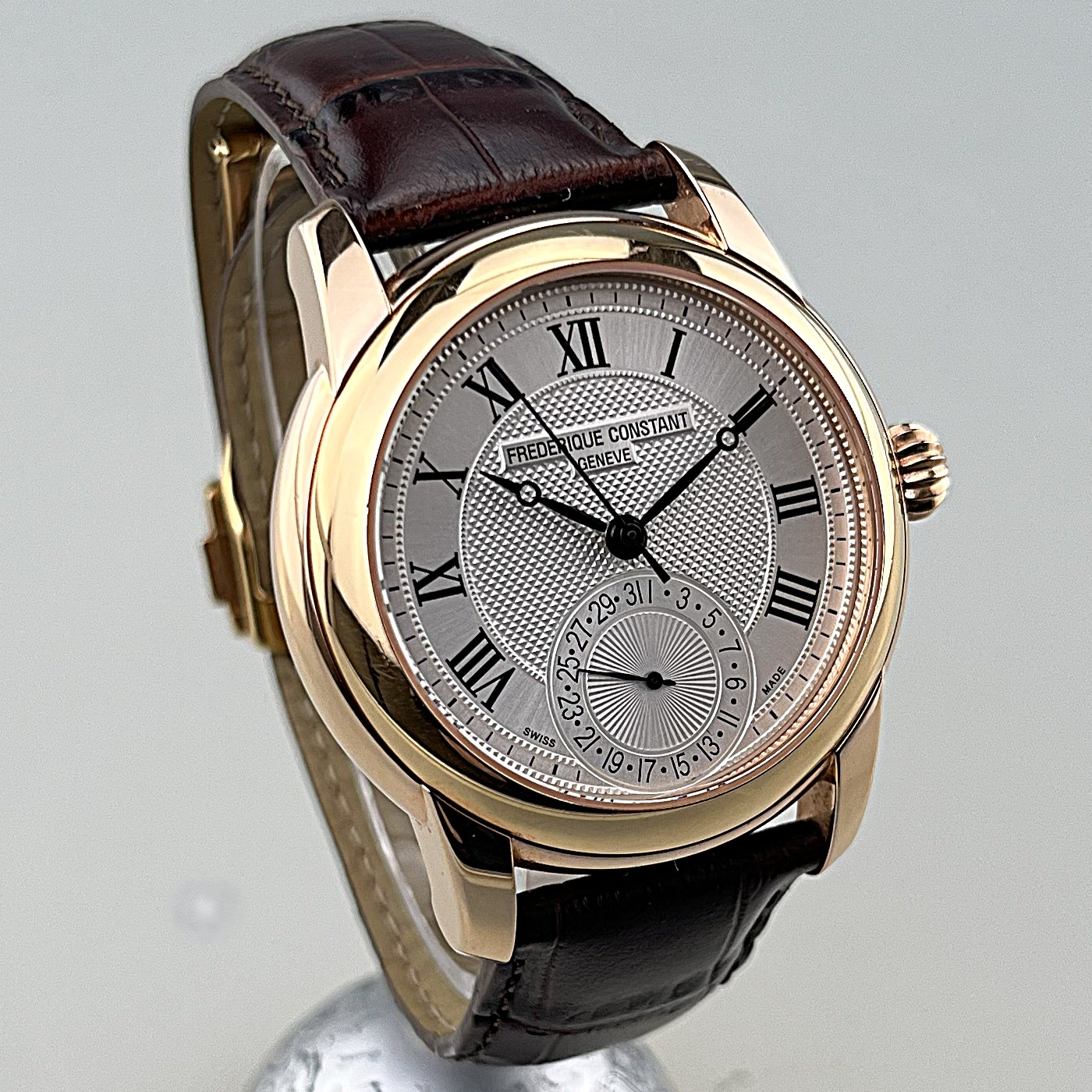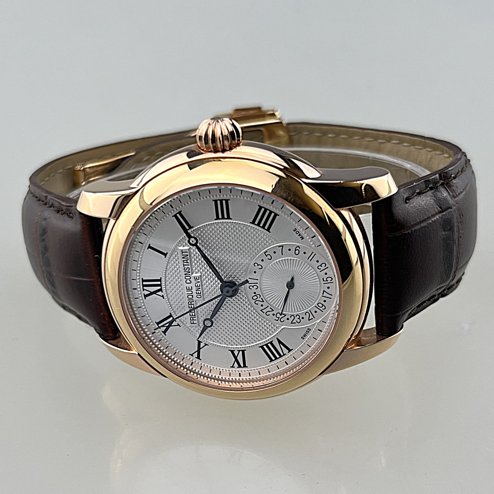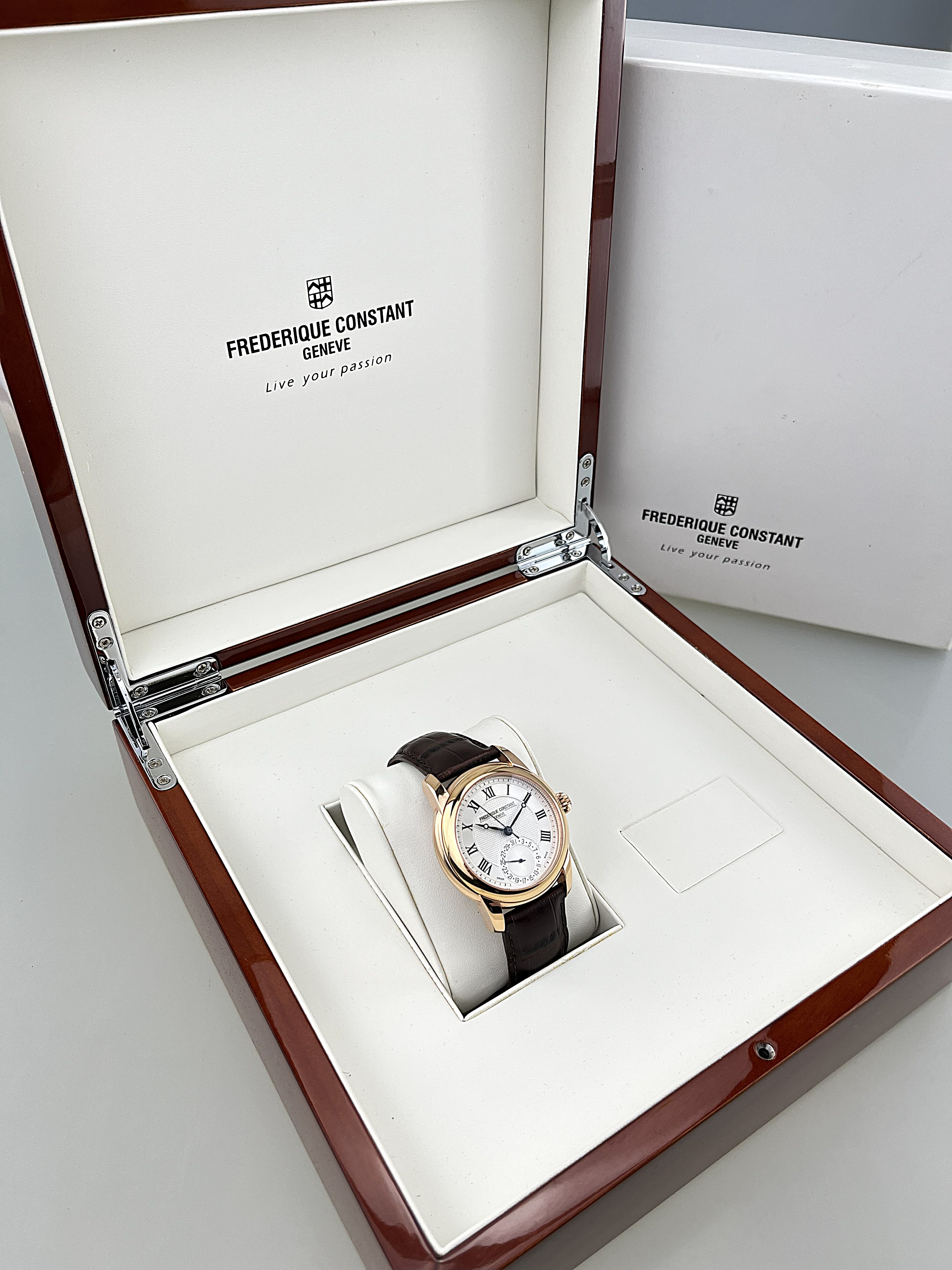 Frederique Constant Classics Manufacture, Edelstahlgehäuse, Roségold plattiert, 42 mm, Edelholzbox und Karton, aus Erstbesitz