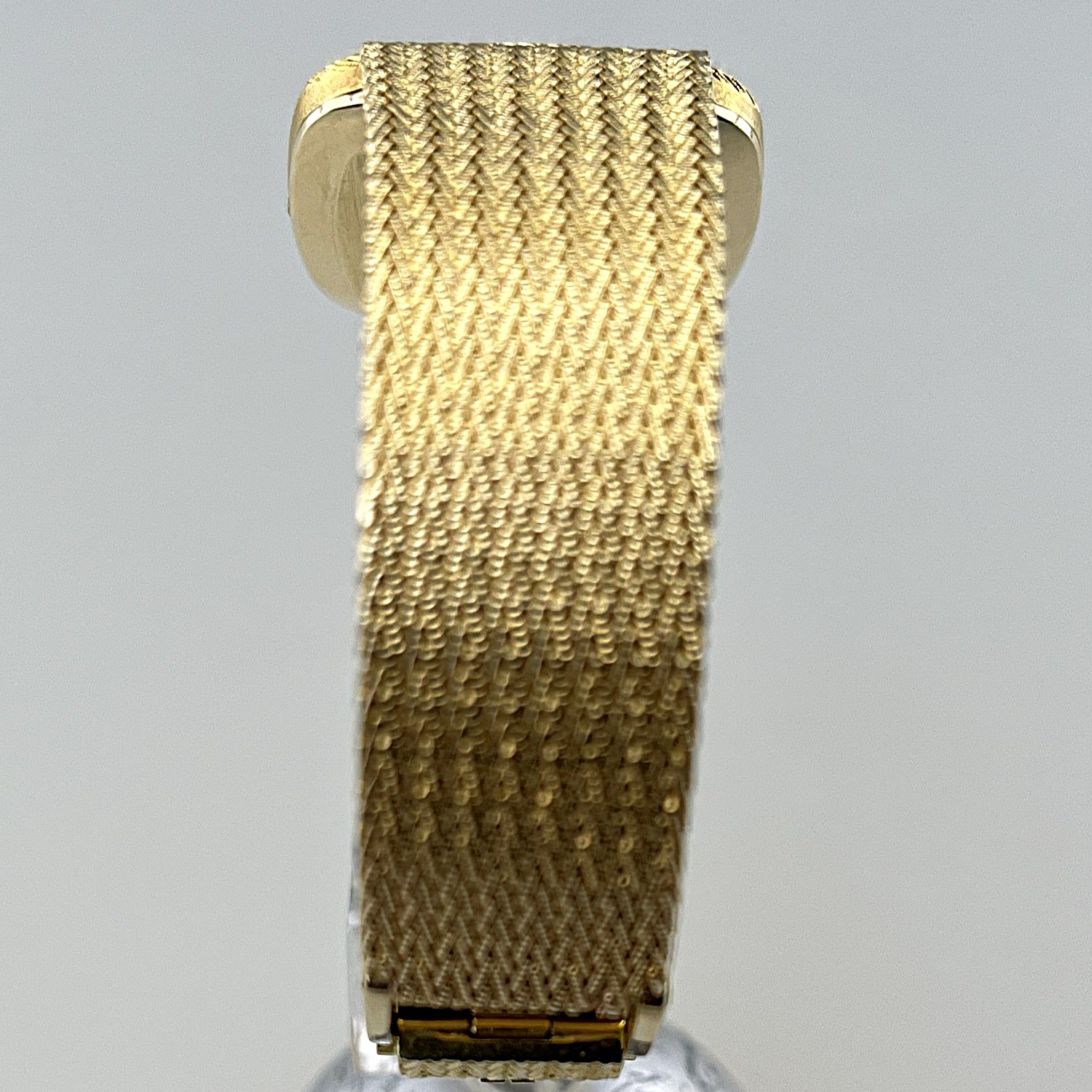 Das gewebte Goldarmband schmiegt sich durch die feine Webart angenehmen an das Handgelenk.