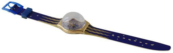 Bei dem Swatch Special HOCUS POCUS (GZ122PACK) handelt es sich um eine außergewöhnliche Uhr in einem extravaganten Design. Das Kunststoffgehäuse, welches durch eine goldfarbene Metallkappe geschützt ist, unterstreicht die edle blau-golden Gesamtoptik, des Zifferblatts, welches unter einem Glas im Look einer Zauberkugel liegt und eine magische Sonne zeigt. Harmonisch darauf abgestimmt, das Kunststoffarmband mit Sonnenstrahlen und Sternen.